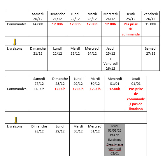 MODALITÉS DE COMMANDE PENDANT LES VACANCES